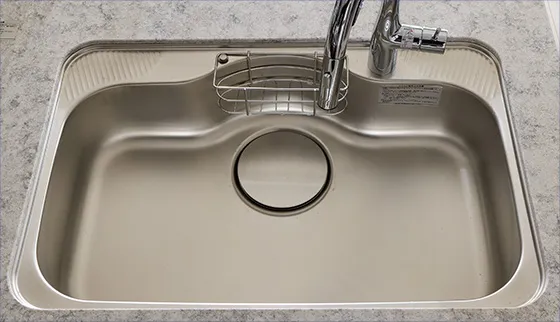 中華鍋も洗える効率的な形状を持つ機能的なシンク。水ハネ音も軽減した静音タイプを採用しました。 ※BタイプはZSシンクのため幅が異なります。