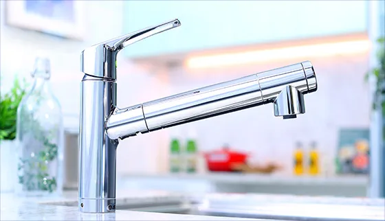 3重濾過システム採用の浄水カートリッジが内蔵された浄水器一体型を採用。ワンタッチでシャワー・原水・浄水を切り替えられます。