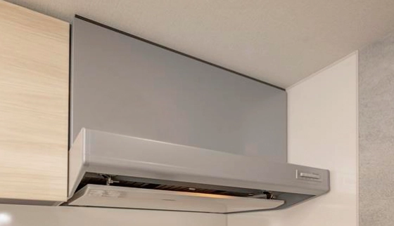 シルバー塗装のスタイリッシュなレンジフードを採用。煙を逃さないホーロー製整流板付きで高い吸引力を実現します。
