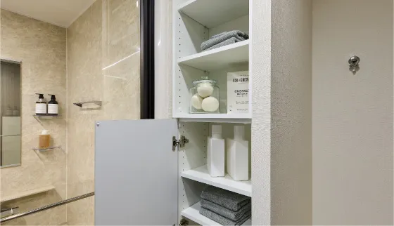 三面鏡裏収納やリネン庫など、