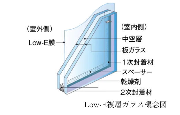Low-E複層ガラスを採用 - 断熱性能に加えて優れた遮熱性能を実現したLow-E複層ガラスを採用しました。冷暖房効率を高めて節電にも貢献し、紫外線も大幅にカットする他、結露なども軽減し、快適な室内環境を創ります。