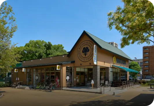 エントランス広場にある「YANMAR MARCHÉ NAGAI」はフードコート型レストラン。 新鮮野菜を添えたローストビーフのライスプレートやサンドイッチをメインに、自家製レモンシロップを使ったレモネードなどメニューも豊富です。 人工芝を使用した全2面のフットサルコートや、大人から子どもまで楽しめる本格アスレチックに加え、長居植物園では、アート集団「チームラボ」の常設展示が開始。大人から子供まで楽しめる大型公園です。