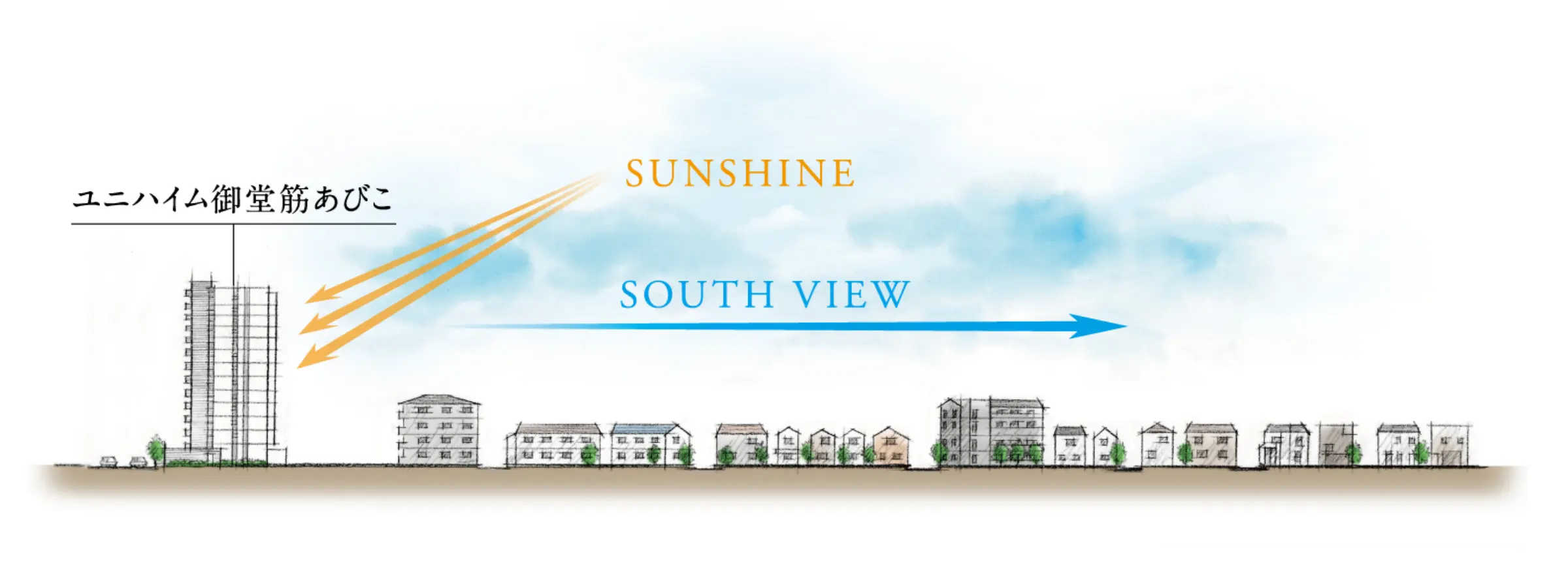 「ユニハイム御堂筋あびこ」高層階には遮る建物が存在しません。