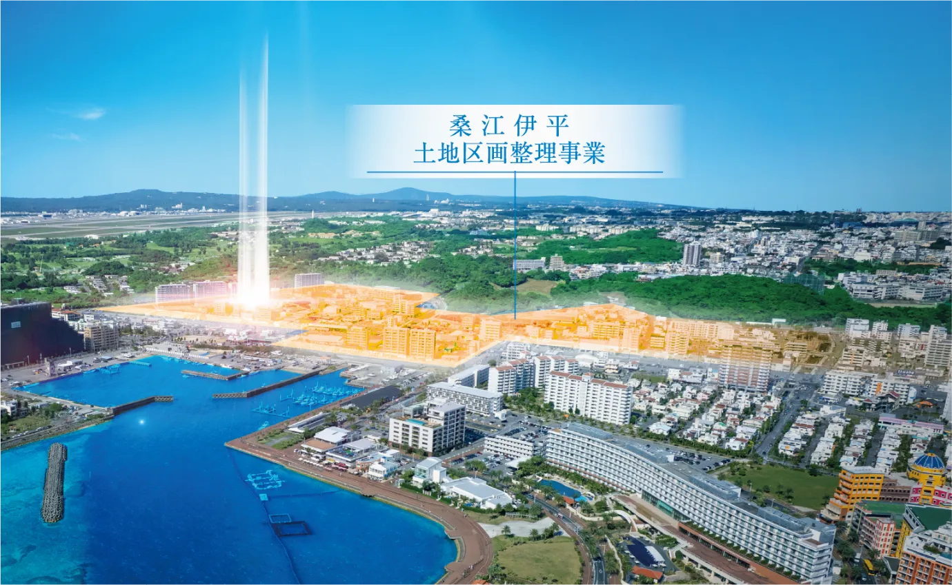 美浜リゾートを間近に望む北谷町中心部で実施され、2020年に完了した「桑江伊平土地区画整理事業」。
